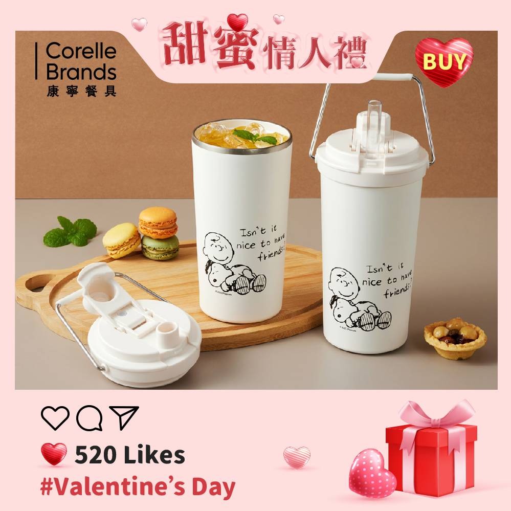 買1送1【康寧 Snapware】SNOOPY史努比 不鏽鋼辦公杯620ml+運動瓶1200ml