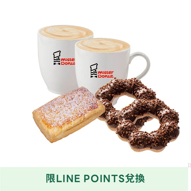 [LINE POINTS 1點大於1元活動]【Mister Donut】感謝有你雙倍打氣 雙人午茶組合好禮即享券(甜甜圈)