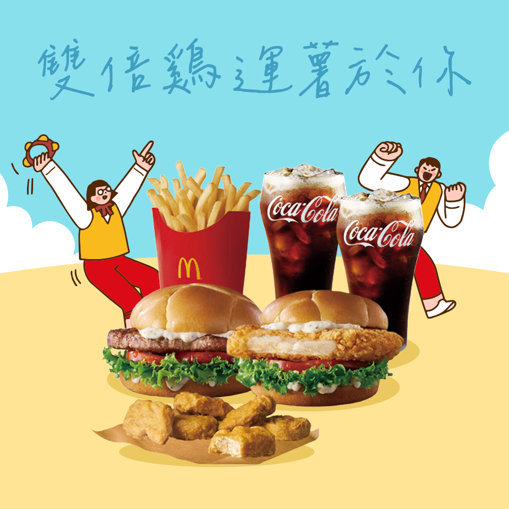 [麥當勞·11月限定麥心意]【麥當勞】雙層牛肉吉事堡+勁辣鷄腿堡+六塊麥克鷄塊+可口可樂(中)x2好禮即享券