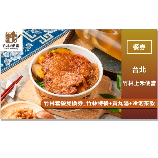 台北【竹林上禾便當】滷香排骨套餐兌換券_滷香排骨飯+貢丸湯+冷泡茶飲(MO)