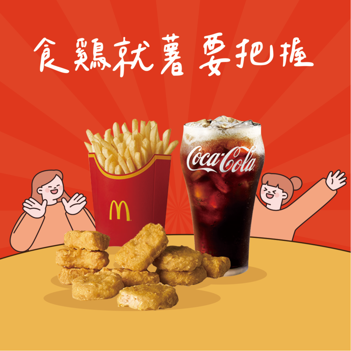 【麥當勞·麥心意】謝謝你火熱相挺:勁辣鷄腿堡+麥克鷄塊(4塊)+薯條(小)+可樂(中) 好禮即享券
