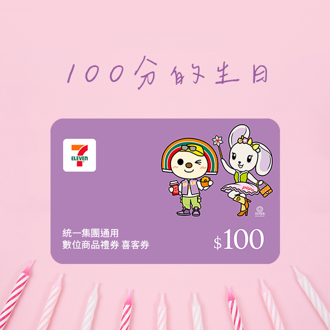【統一集團通用】100元 7-ELEVEN數位商品禮券 喜客券(輸入序號後.可分次使用)