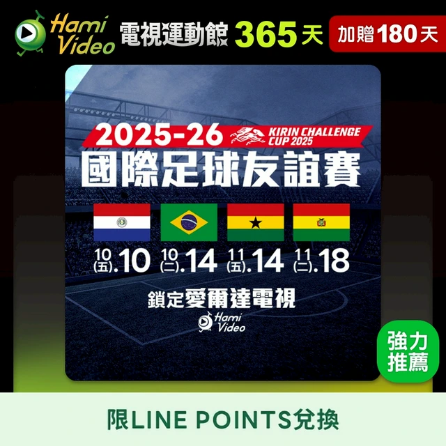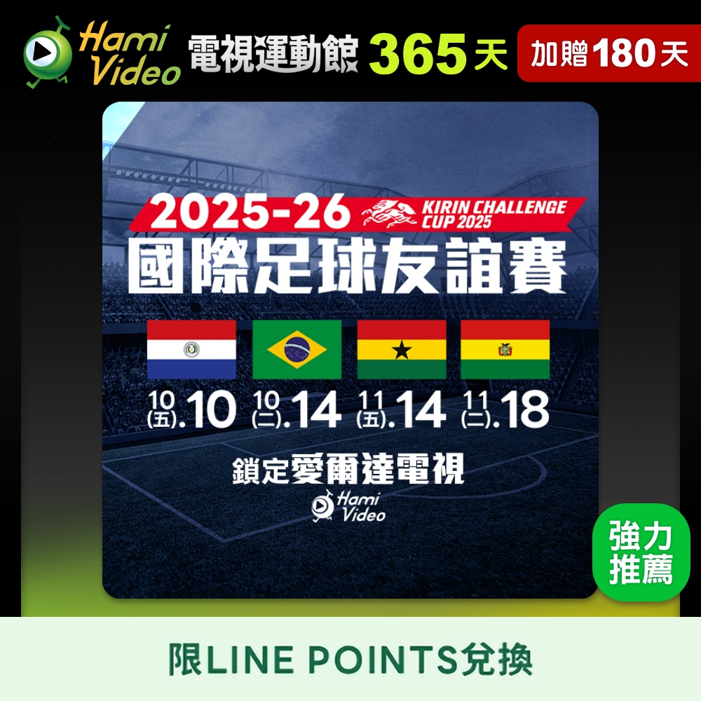 【LINE POINTS兌換】Hami Video電視運動館180天序號卡(加贈75天) 享樂券