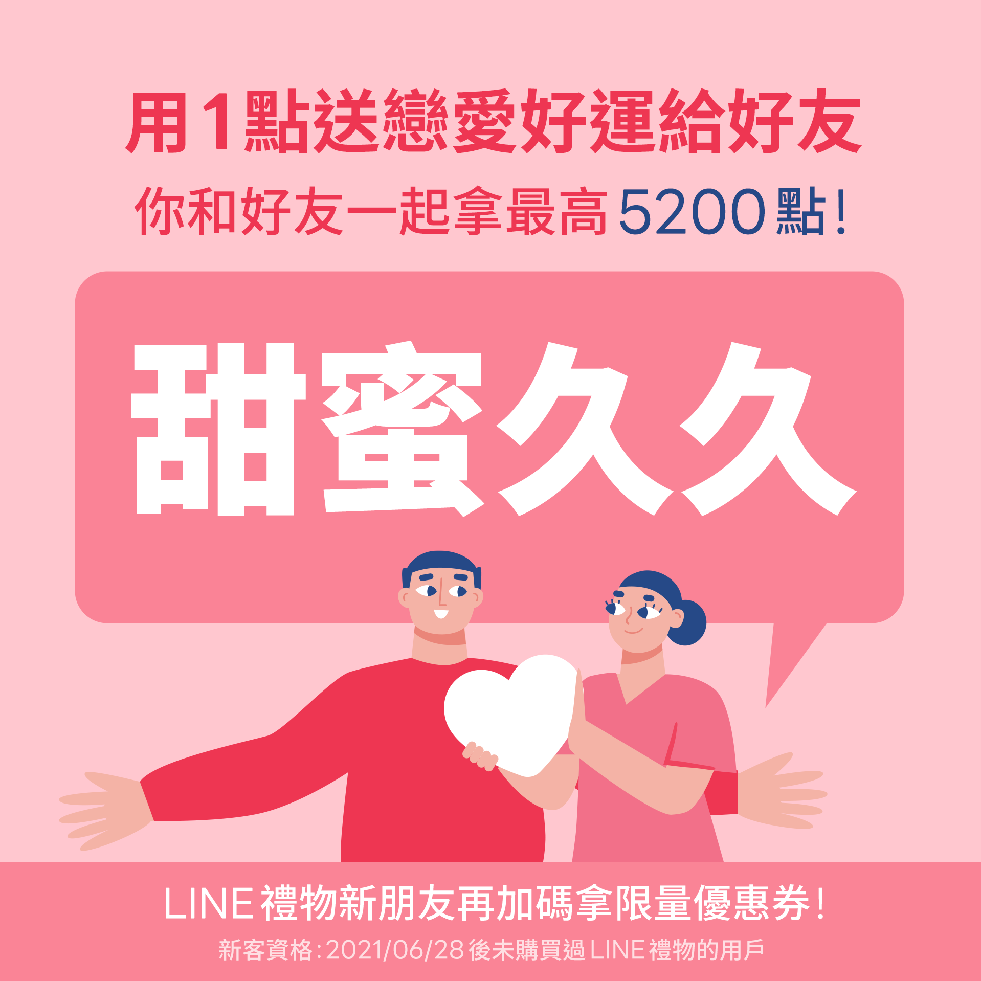 [1點戀愛應援卡:祝甜蜜久久] 用LINE POINTS 1點為好友送上戀愛好運,一起兌換好禮機會!