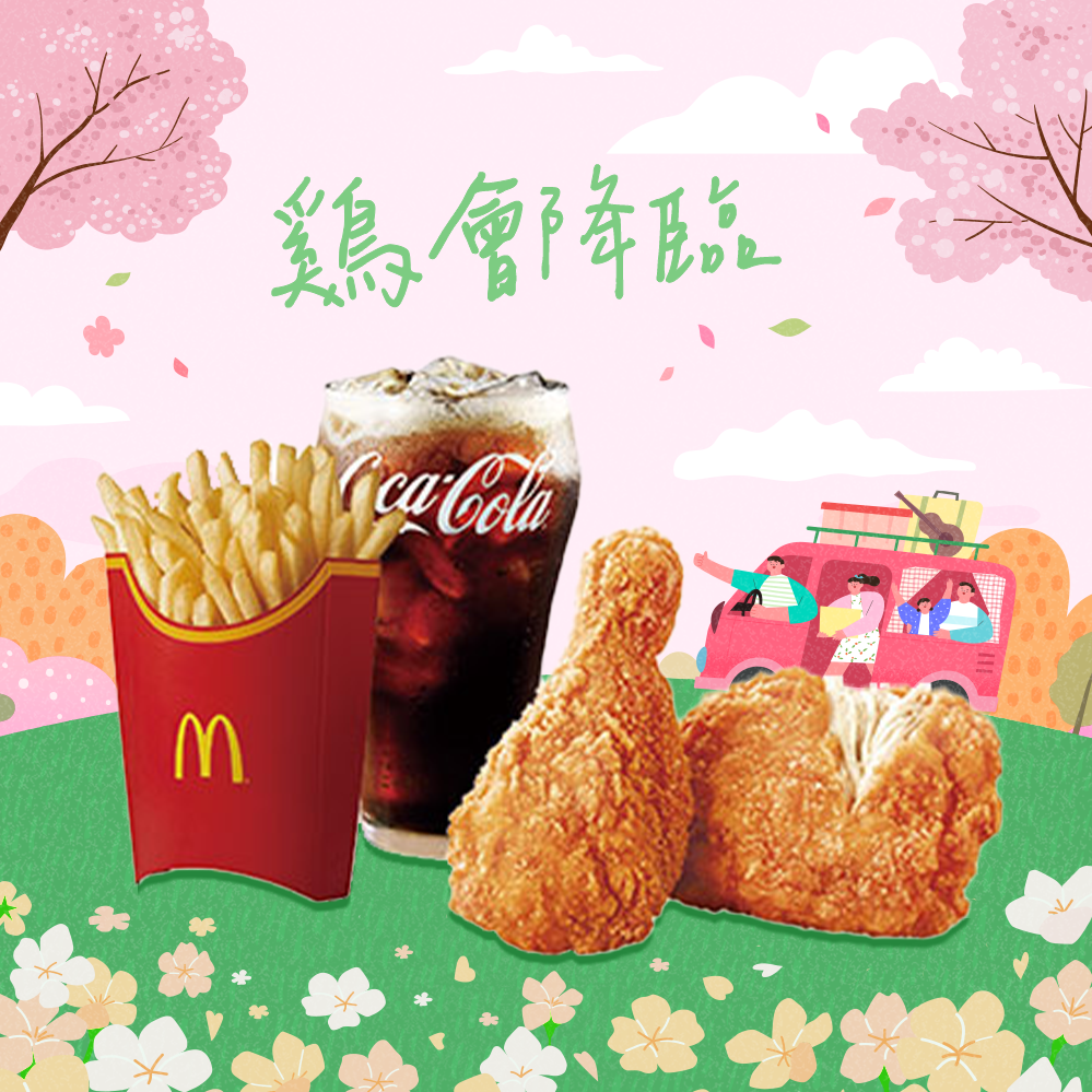 [麥當勞·2月限定麥心意]【麥當勞】麥脆鷄腿2塊 (原味)+勁辣鷄腿堡+麥克鷄塊6塊+薯條(大)+可樂(中)x2好禮即享券