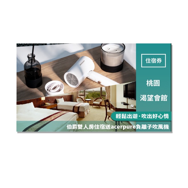 【渴望會館】輕鬆出遊·吹出好心情 伯爵雙人房住宿送acerpure負離子吹風機(25MO)
