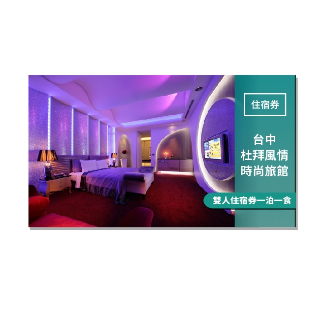 台中【杜拜風情時尚旅館】雙人住宿券一泊一食(MO)