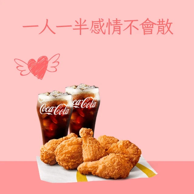 [麥當勞·2月限定麥心意]【麥當勞】麥脆鷄腿2塊 (原味)+勁辣鷄腿堡+麥克鷄塊6塊+薯條(大)+可樂(中)x2好禮即享券
