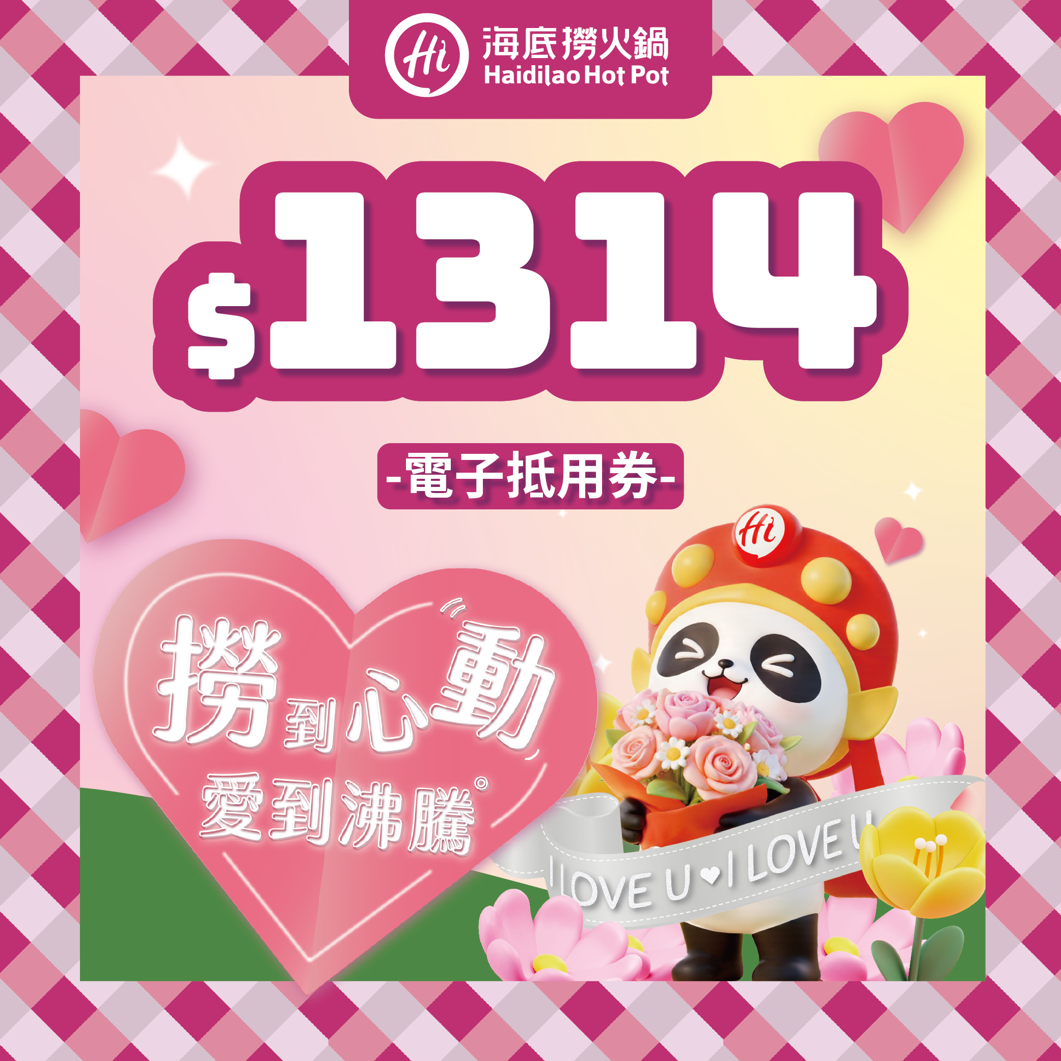 情人節快樂【海底撈火鍋】520元電子抵用券
