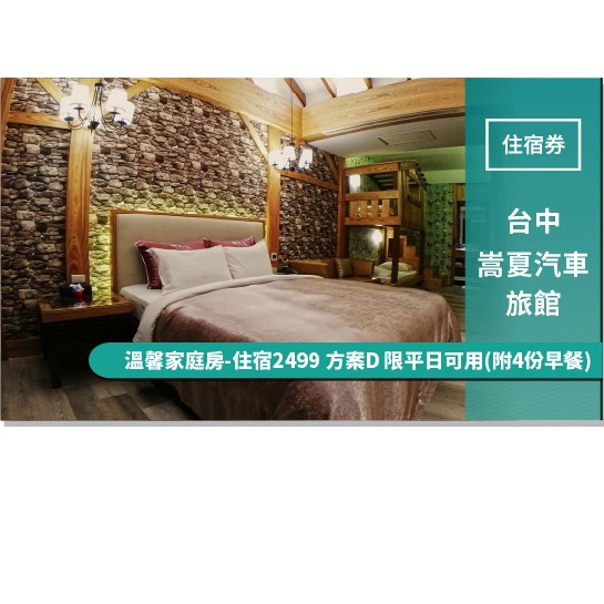 台中【嵩夏汽車旅館】溫馨親子四人房-住宿2499 方案D(限平日可用)(附4份早餐) (MO)