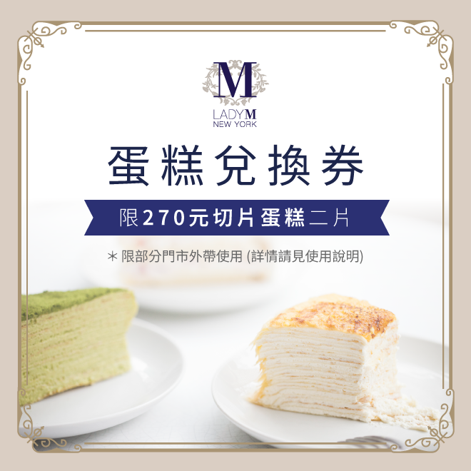 【Lady M】270元切片蛋糕兌換券(僅限部分門市外帶)