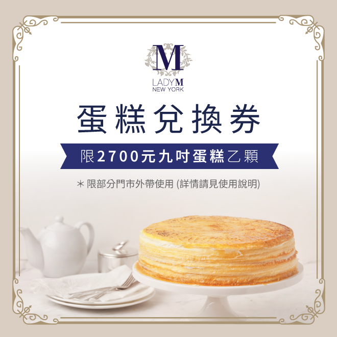 生日快樂!【Lady M】270 元切片蛋糕兌換券(僅限部分門市外帶)
