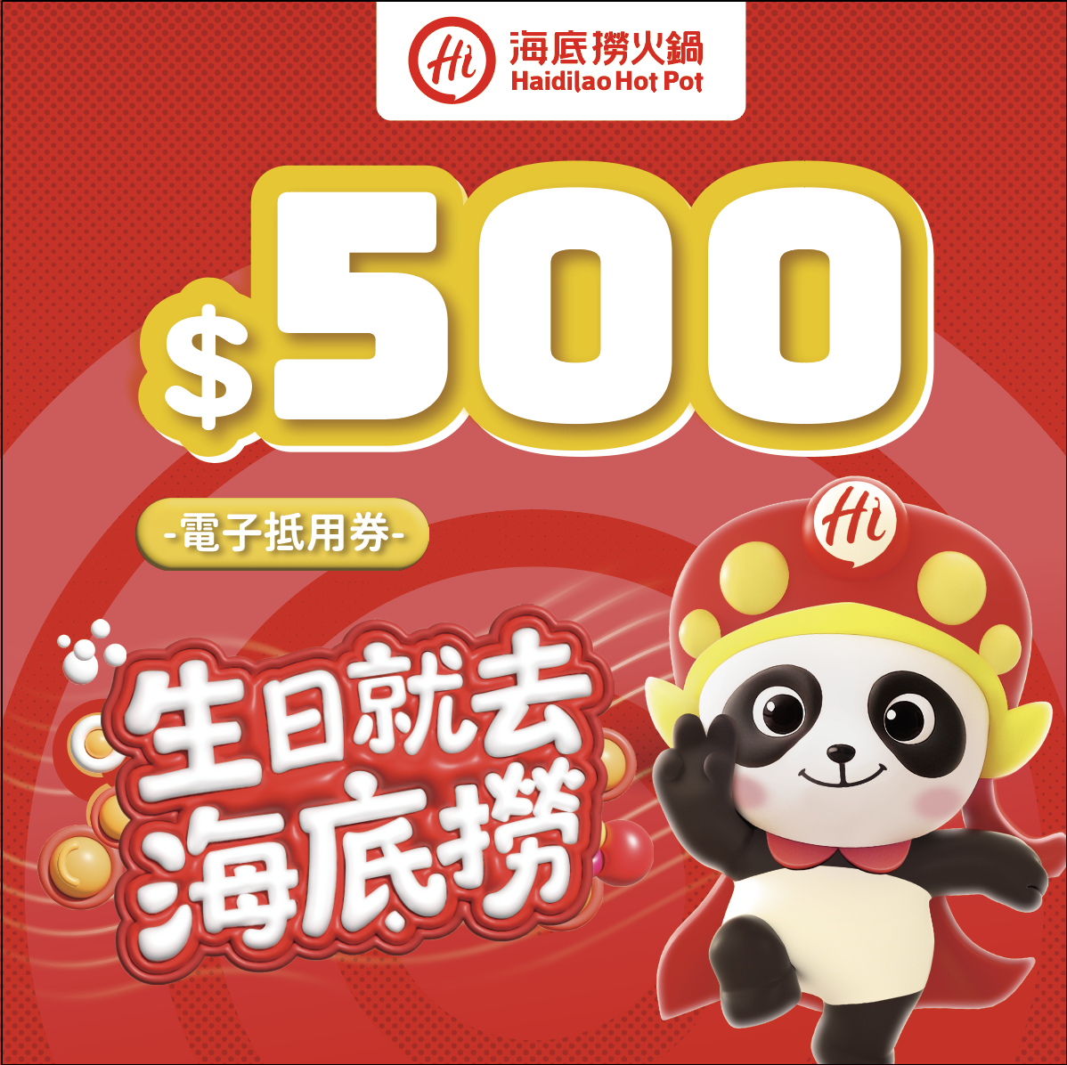 【海底撈火鍋】生日快樂|888元電子抵用券