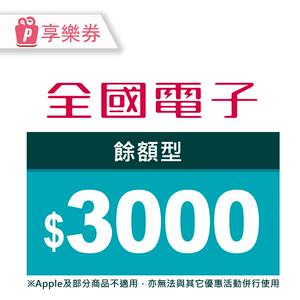 【全國電子】餘額型商品電子券3000元 享樂券