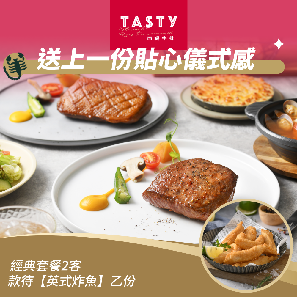 [生日星品禮]【西堤牛排】經典套餐2客款待【英式炸魚】好禮即享券(一次抵用)(限內用)