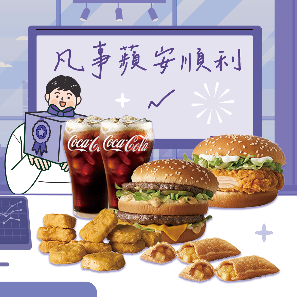 [麥當勞·期間限定麥心意]【麥當勞】大麥克+雙層牛肉吉事堡+勁辣鷄腿堡+六塊麥克鷄塊+大薯x2+可樂(中)x3 好禮即享券