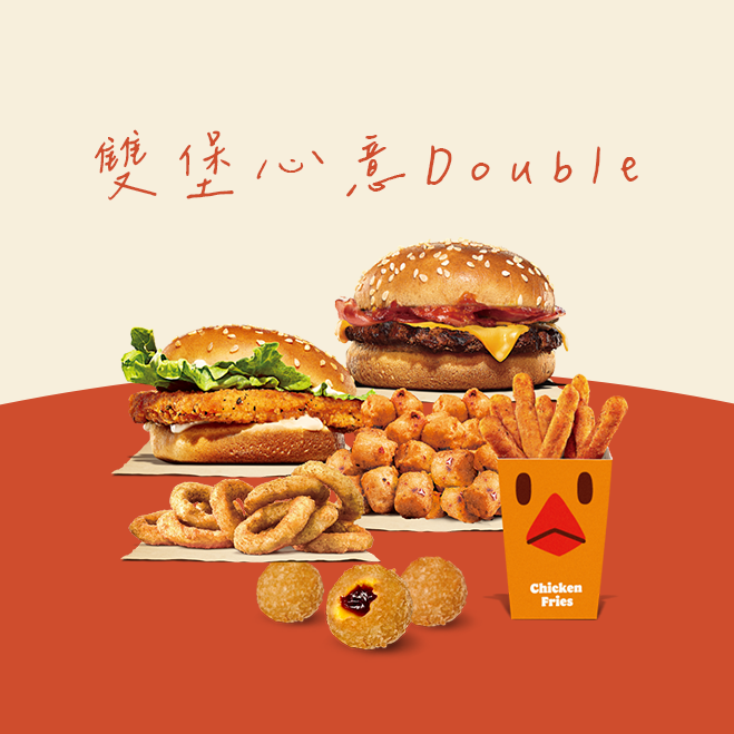 [感恩有禮]【漢堡王】花生安格斯牛肉堡+BBQ培根牛肉堡+雞薯條8入+薯條(小)+中杯飲料x2 喜客券