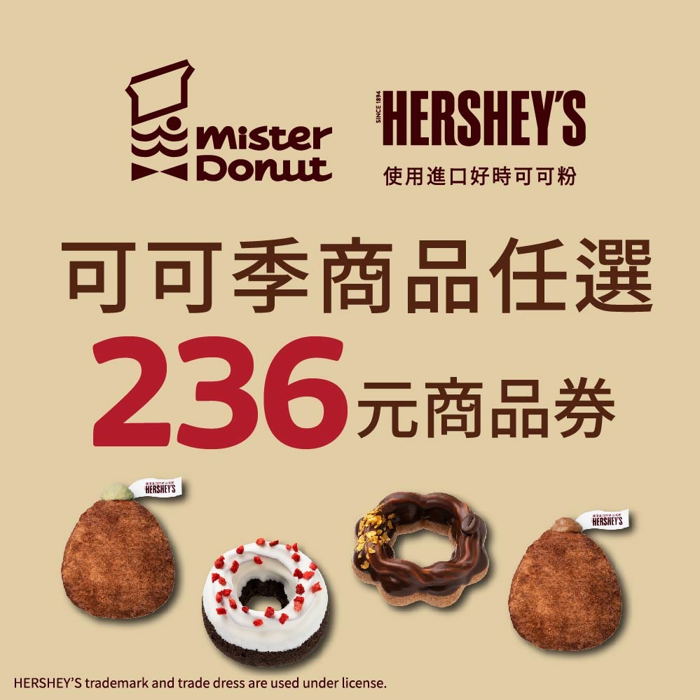 【Mister Donut】【HERSHEY'S可可季 濃情可可午茶組】好禮即享券