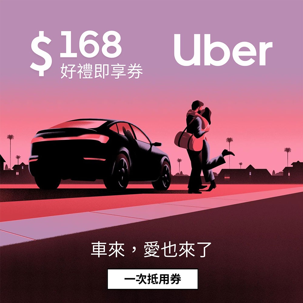 [支持你的路線]【Uber】 168元抵用券好禮即享券(一次抵用券)僅供搭乘使用