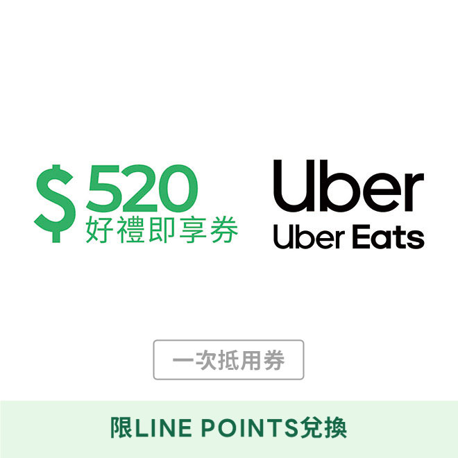 [LINE POINTS兌換]【Uber Eats 】抵用券520元好禮即享券