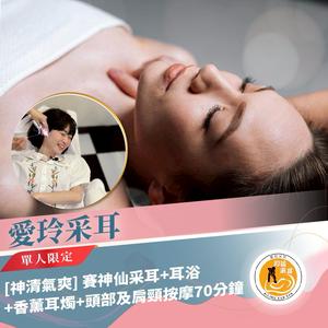 淡水【愛玲采耳】[神清氣爽] 賽神仙采耳+耳浴+香薰耳燭+頭部及肩頸按摩70分鐘(26mo)