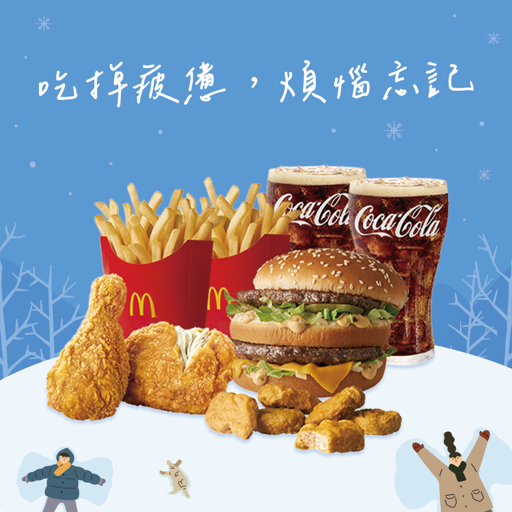 [麥當勞·1月限定麥心意]【麥當勞】大麥克+勁辣鷄腿堡+麥克鷄塊6塊+薯條(大)+可樂(中)x2好禮即享券