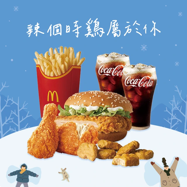 [麥當勞·2月限定麥心意]【麥當勞】麥脆鷄腿2塊 (原味)+勁辣鷄腿堡+麥克鷄塊6塊+薯條(大)+可樂(中)x2好禮即享券