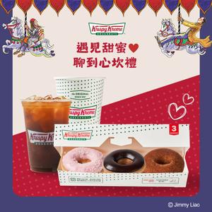 【Krispy Kreme】兩人三圈 ❤️ 聊聊分享組(飲品 2 杯 +綜合口味甜甜圈 3 入盒裝)(僅限部分門市兌換)