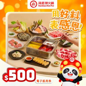[感謝你]【海底撈火鍋】500元電子抵用卷