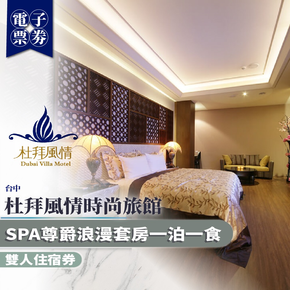 台中【杜拜風情時尚旅館】雙人住宿券一泊一食(MO)