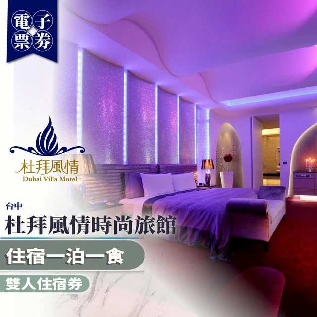 台中【杜拜風情時尚旅館】雙人住宿券一泊一食/SPA尊爵浪漫套房(MO)
