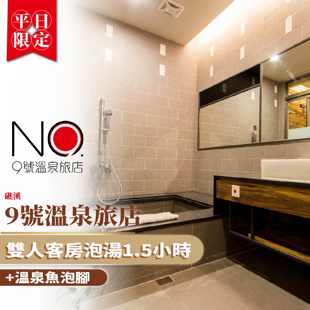 礁溪【9號溫泉旅店】平日雙人客房泡湯1.5小時+溫泉煮食套餐(加贈溫泉魚泡腳)MO26
